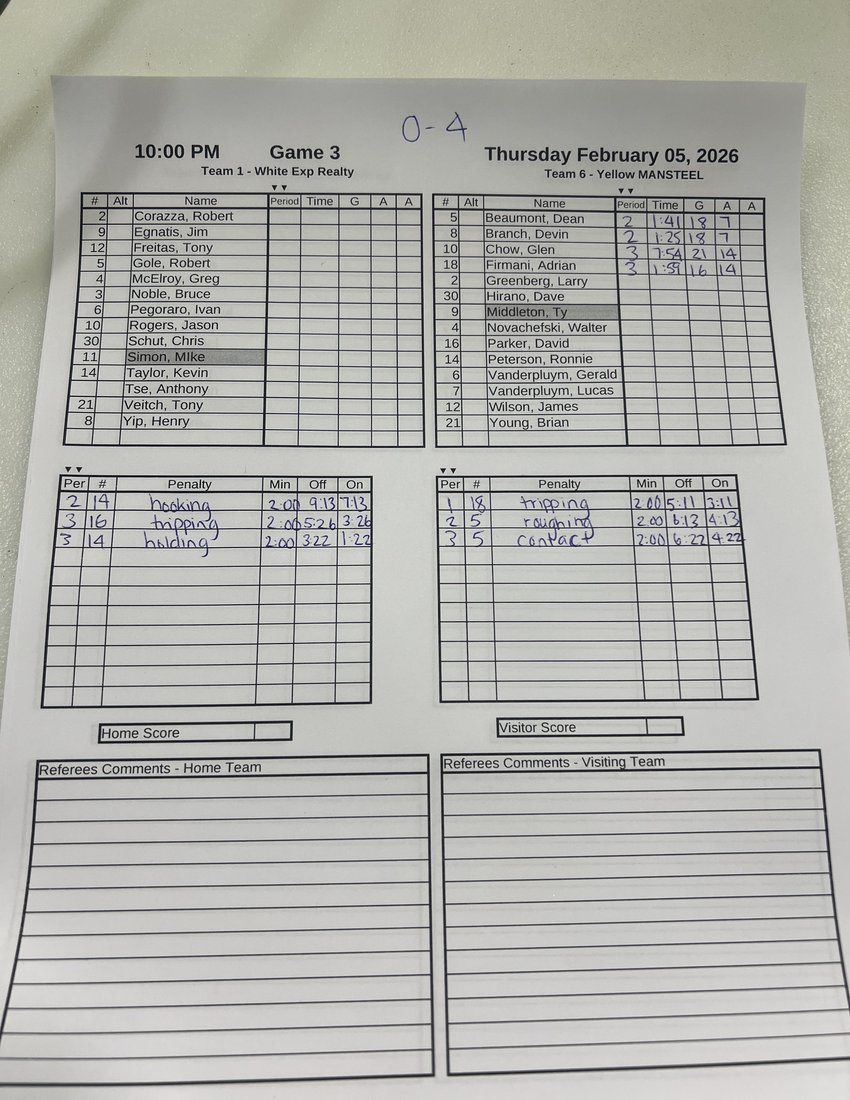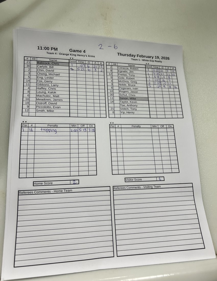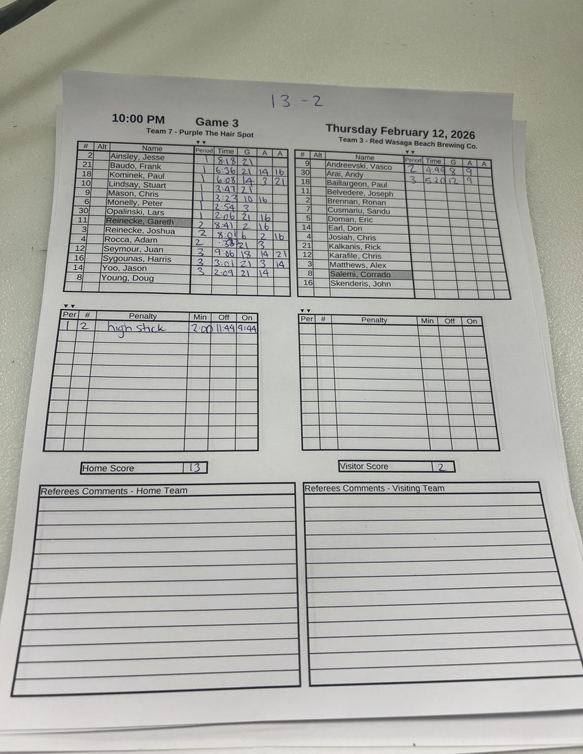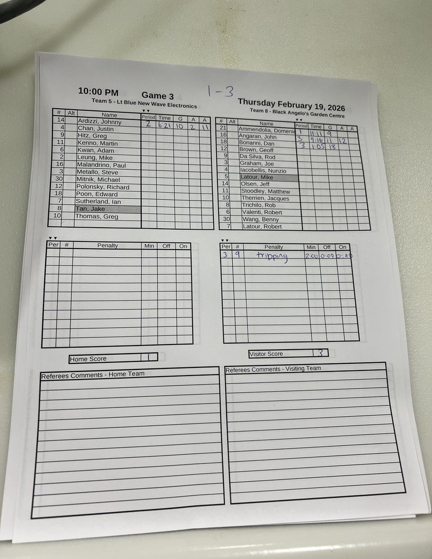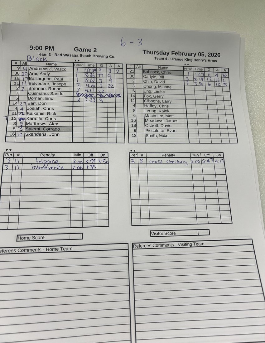 | 131 | 2026-Feb-9 | 3 | 1 Exp Realty | 3 Wasaga Beach Brewing Co. | 2 - 3 | |