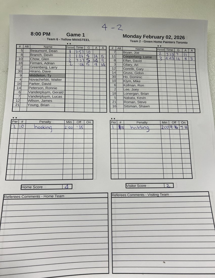 | 53 | 2025-Nov-17 | 1 | 6 MANSTEEL | 2 Home Painters Toronto | 3 - 2 | |