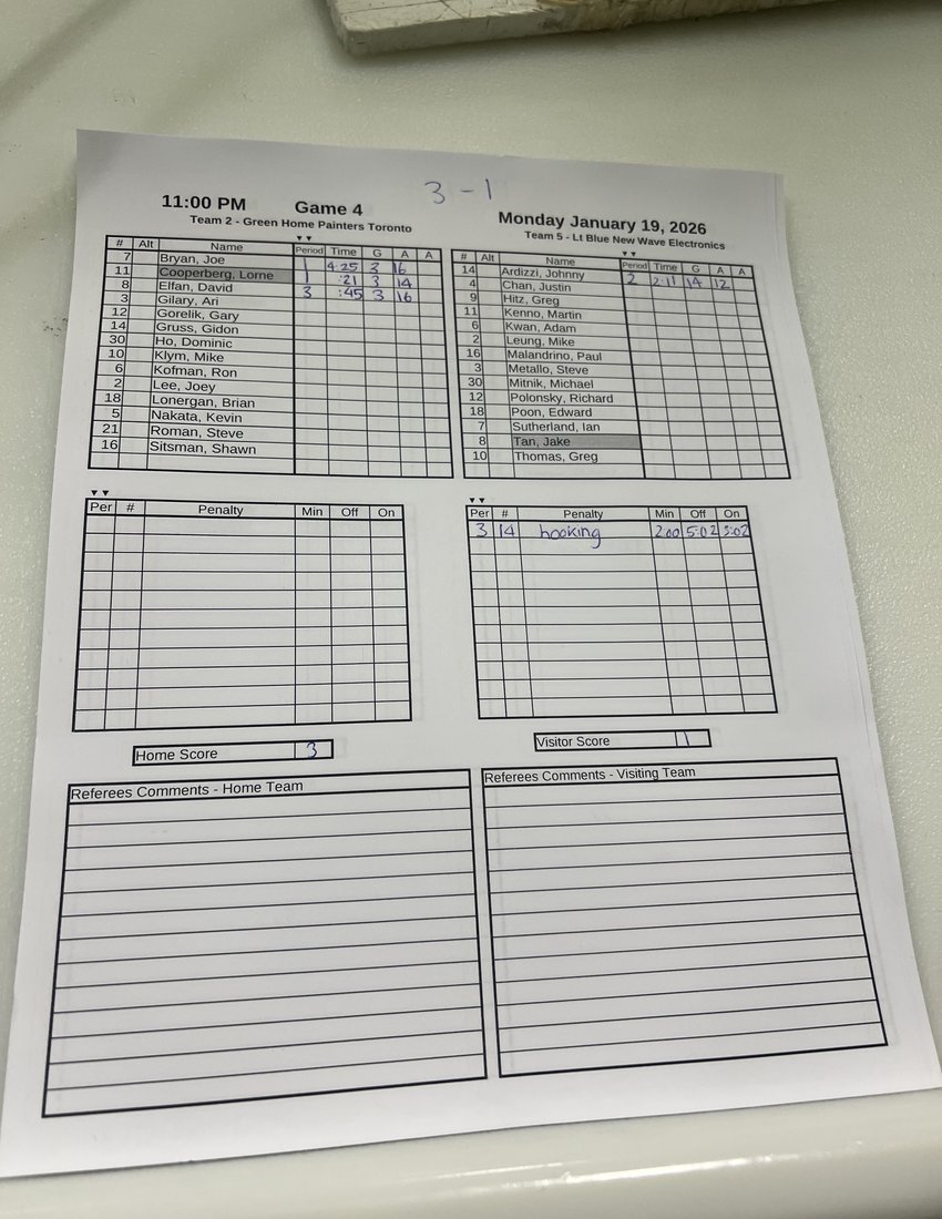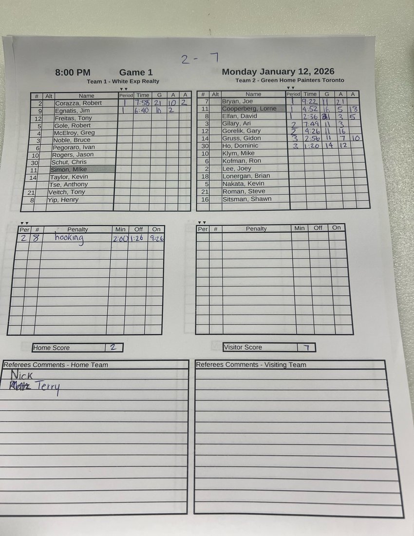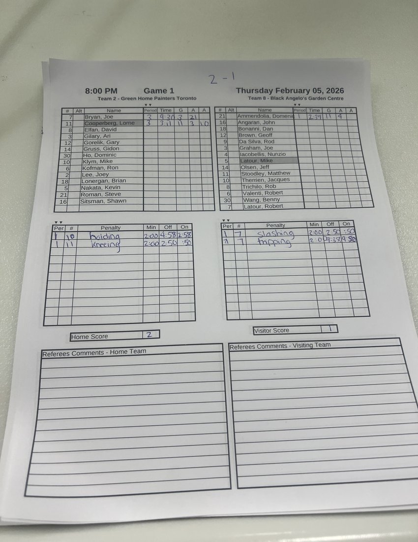| 30 | 2025-Oct-27 | 2 | 3 Wasaga Beach Brewing Co. | 2 Home Painters Toronto | 5 - 3 | |