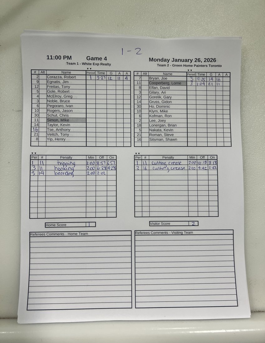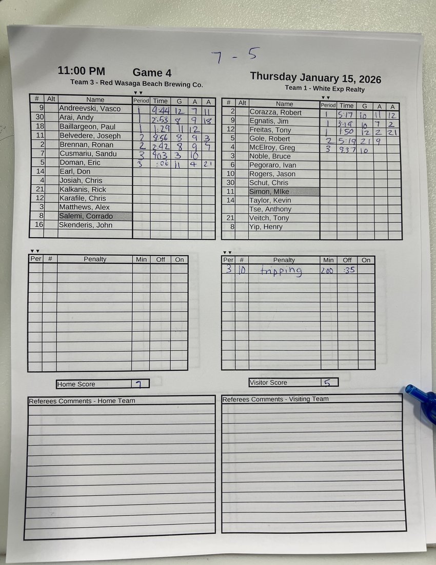 | 108 | 2026-Jan-15 | 4 | 1 Exp Realty | 3 Wasaga Beach Brewing Co. | 5 - 7 | |