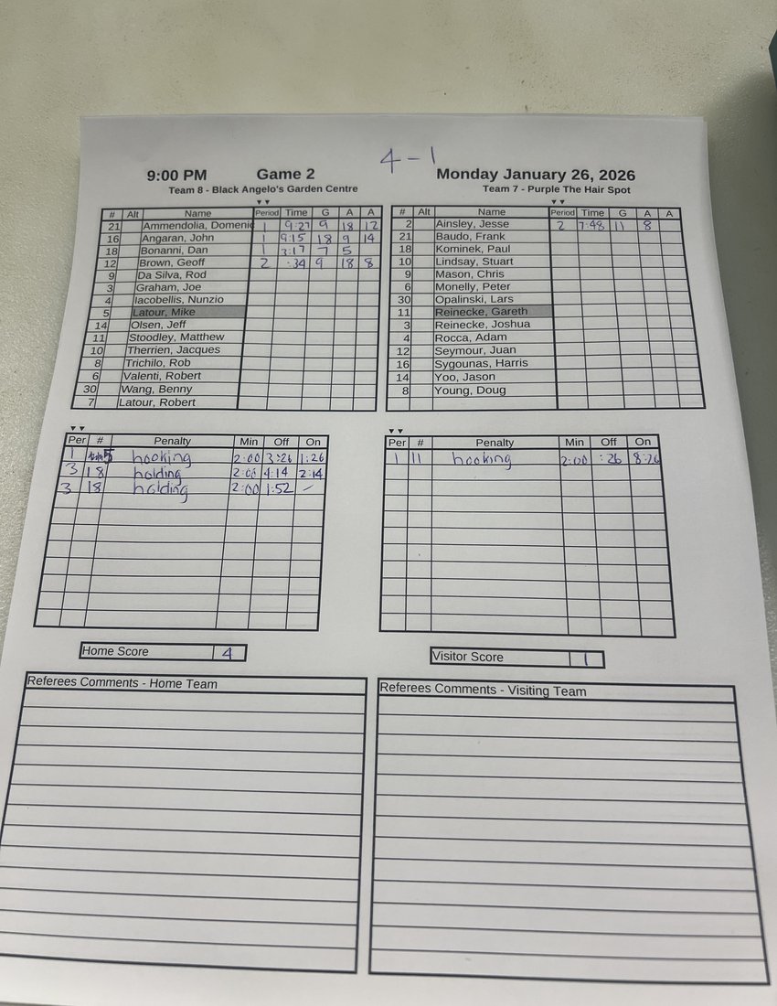 | 98 | 2026-Jan-8 | 2 | 8 Angelo's Garden Centre | 1 Exp Realty | 7 - 2 | |